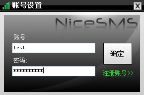 第二步,在這里填上短信平臺的賬號,確定后進入主界面