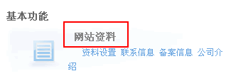 2、進入管理主頁后,在基本功能那里點擊“網站資料