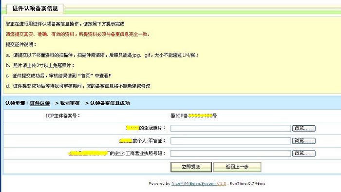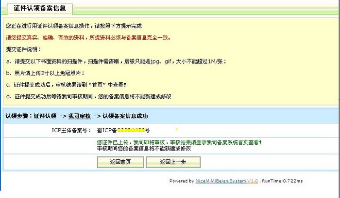 2 步:提交資料后耐思尼克將審核,審核通過(guò)后備案信息認(rèn)領(lǐng)成功