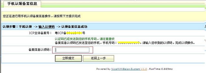 1 步:請(qǐng)輸入與備案信息中一致的手機(jī)號(hào),會(huì)發(fā)送認(rèn)領(lǐng)短信至此手機(jī)