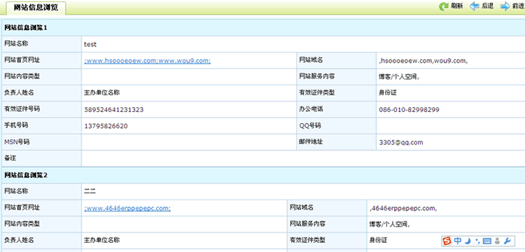 瀏覽網站信息:可以查看您已經添加的所有的網站的備案信息
