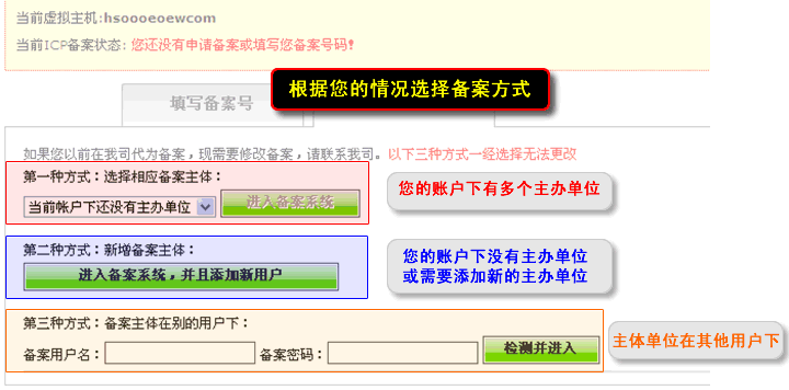 輸入備案用戶名和密碼即可進入到備案系統.三種方式進入的備案系統界面都一樣.如下圖: