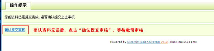 若果還有其他的網站要提交備案,請不要點擊”確認提交審核”,可以返回到備案系統首頁