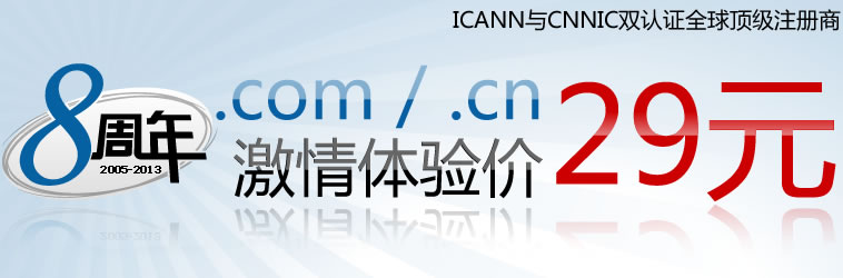 為了感謝廣大用戶一直以來的支持和耐思尼克為了緩解市場上域名注冊者搶注域名的壓力,耐思尼克特別推出了“域名最低價”的超值優惠活動。活動期間每一個新注冊用戶都可以29元注冊com/cn域名一個。29元?沒錯就是29元,你沒聽錯,也沒看錯,注冊域名真的僅需要29元而已哦!